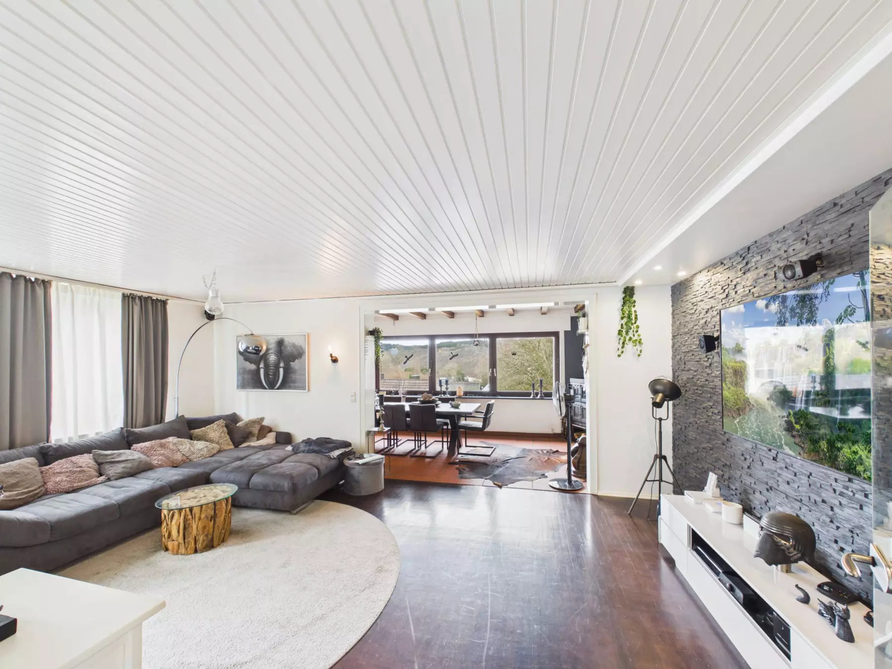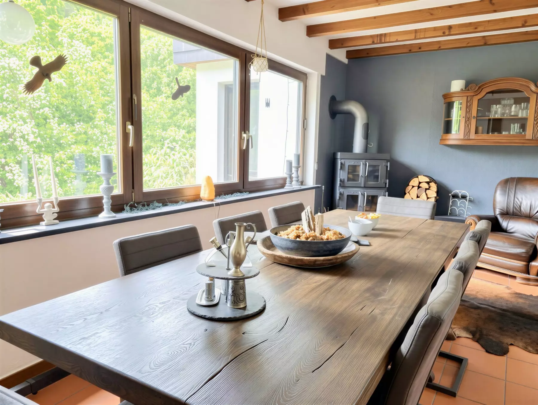 • Großzügiger Wohnbereich mit offenem Kamin – der perfekte Ort für gemütliche Abende mit Ihren Liebsten.